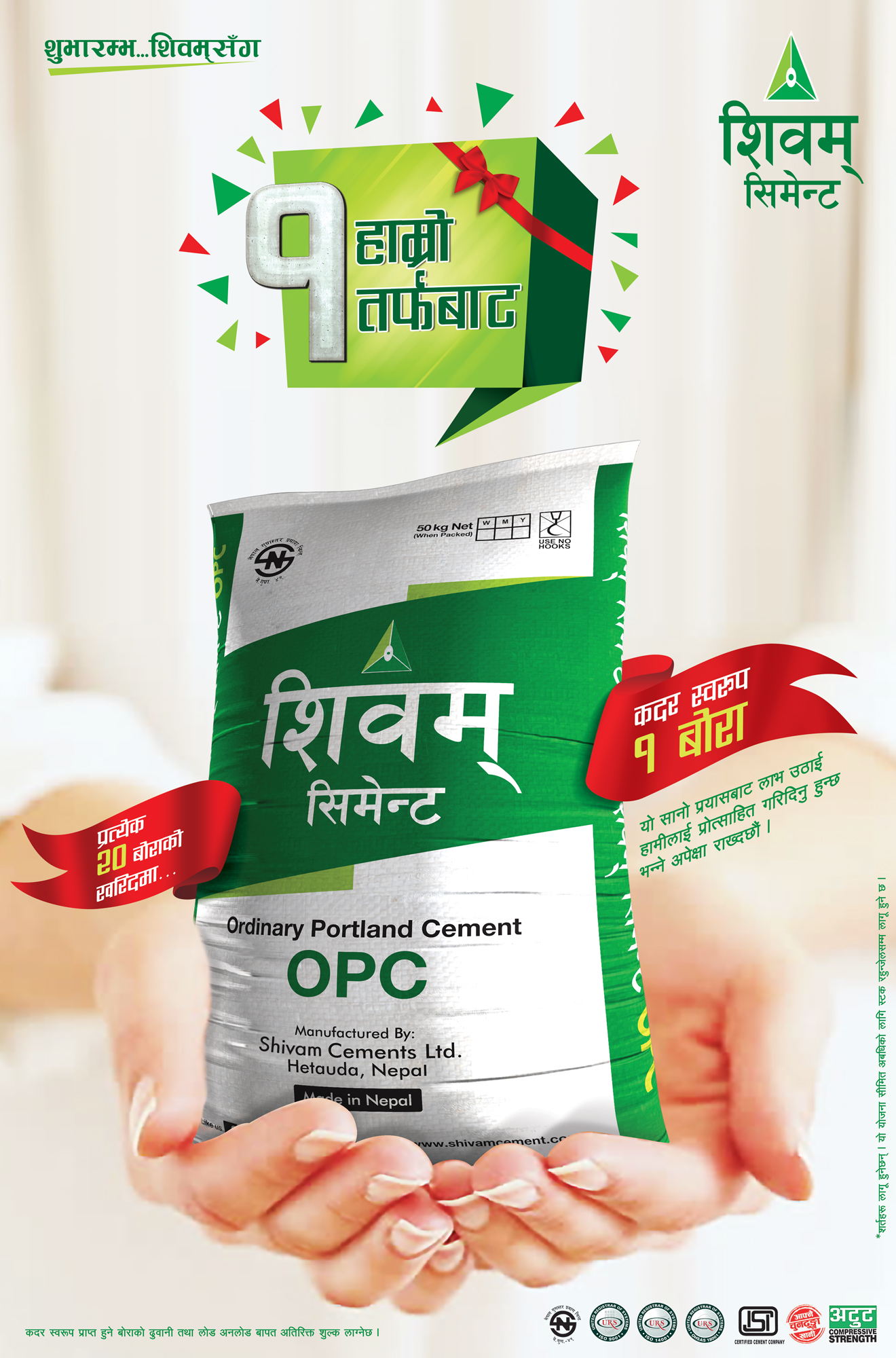 काठमाडौं–विगत लामो समयदेखि गुणस्तरयुक्त असली ओपिसि सिमेन्ट उत्पादन गर्दै निर्माण क्षेत्रमा एक अग्रणी स्थान हासिल गर्न सफल शिवम् सिमेन्टले विशेष योजना ल्याएको छ । यस सम्मान योजना अन्तर्गत अबदेखि शिवम् सिमेन्टका प्रत्येक २० बोराको खरिदमा अर्को १ बोरा शिवम् सिमेन्ट सित्तैमा दिने भएको छ ।
